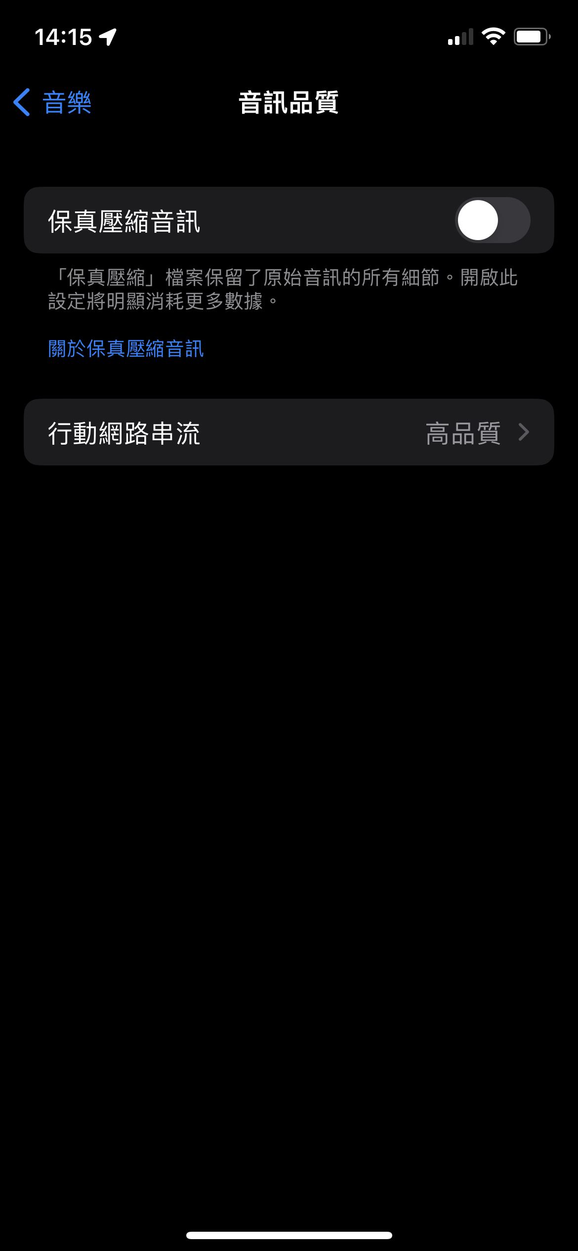 Published: 2021-06-08 Updated: 2021-06-08 Written by: Q 3 0 Apple Music 無損音質登場 各位有使用Apple Music並更新到iOS 15的話,應該會在 設定 音樂 音訊品質 發現多了 保真壓縮音訊 這個選項。另外也有杜比全景聲的選項,符合這些條件的朋友可以開啟試試。保真壓縮音訊相關 Categories: blog, hobby, sound Tags: Apple Music, iOS15, WWDC 2021, 保真壓縮音訊, 無損音質